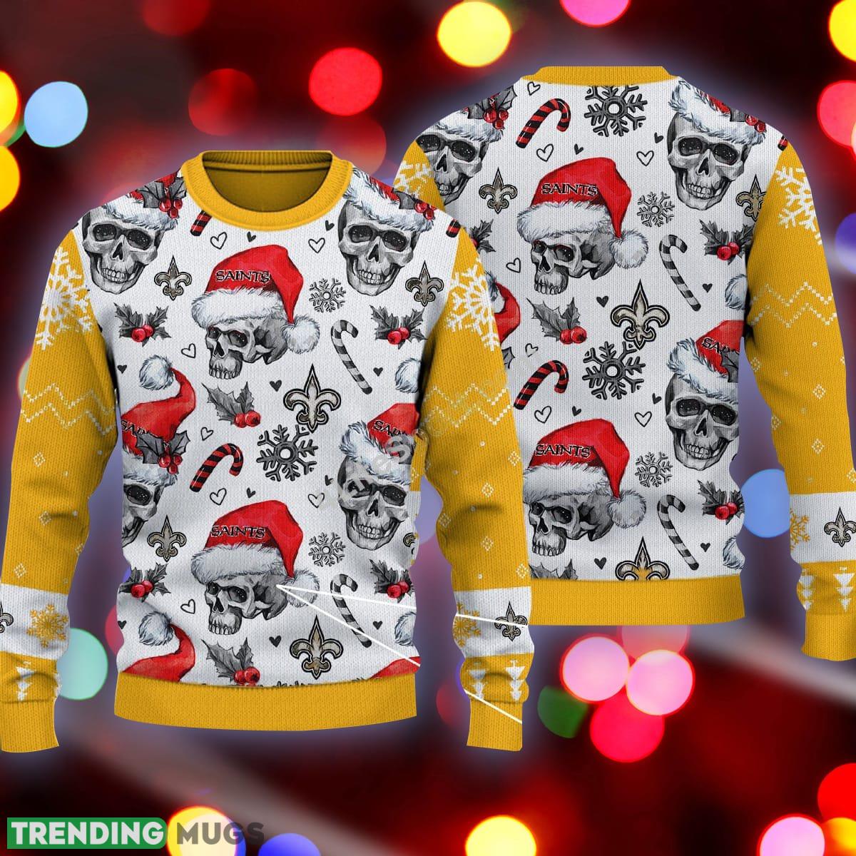 Xmas New Orleans Saints Skull Candy Cane Yellow Ugly Sweater Informations: