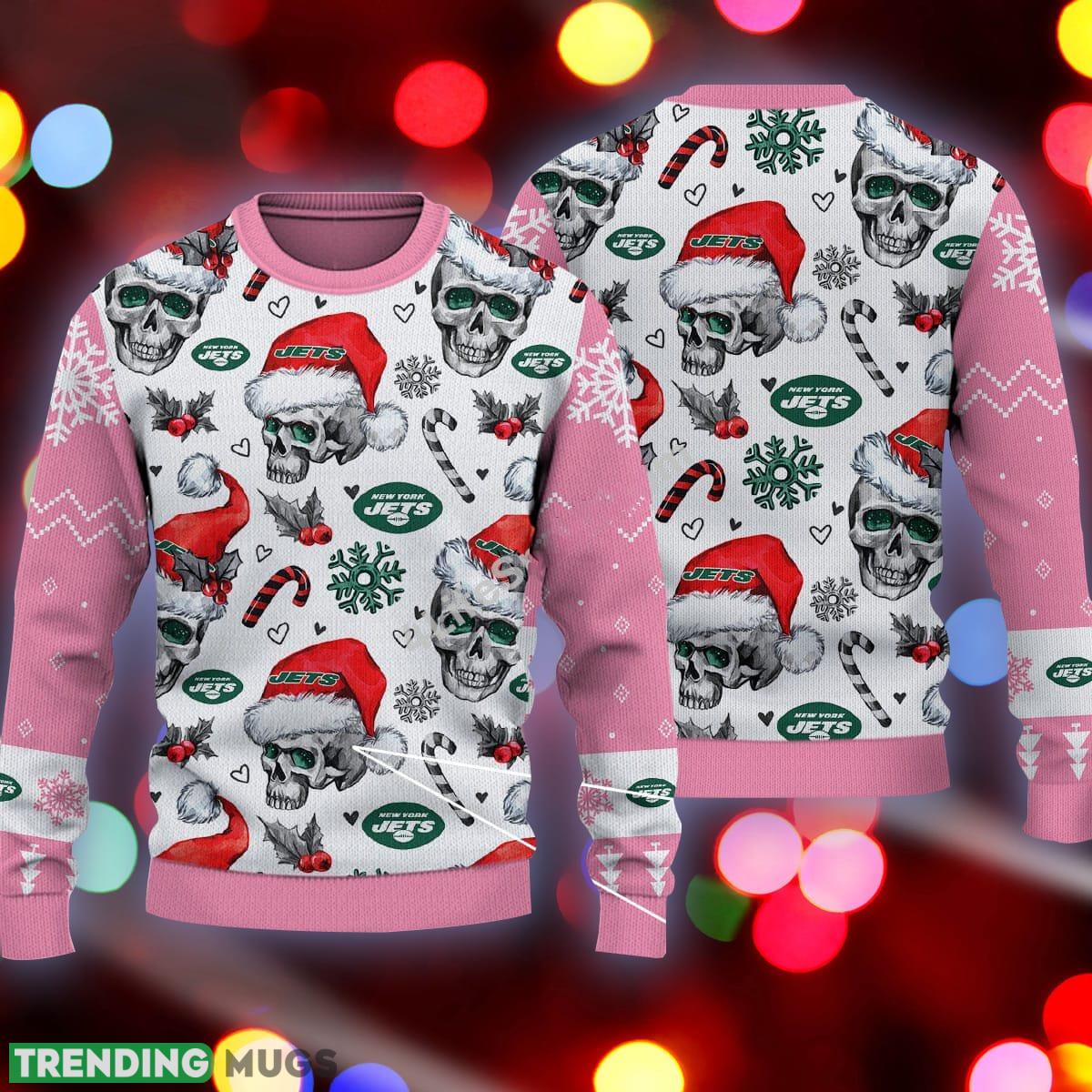 Don’t miss out on celebrating the holidays in style and supporting your favorite team. Grab your Xmas New York Jets Skull Candy Cane Pink Ugly Sweater today and show off your unique fashion sense while spreading holiday cheer!