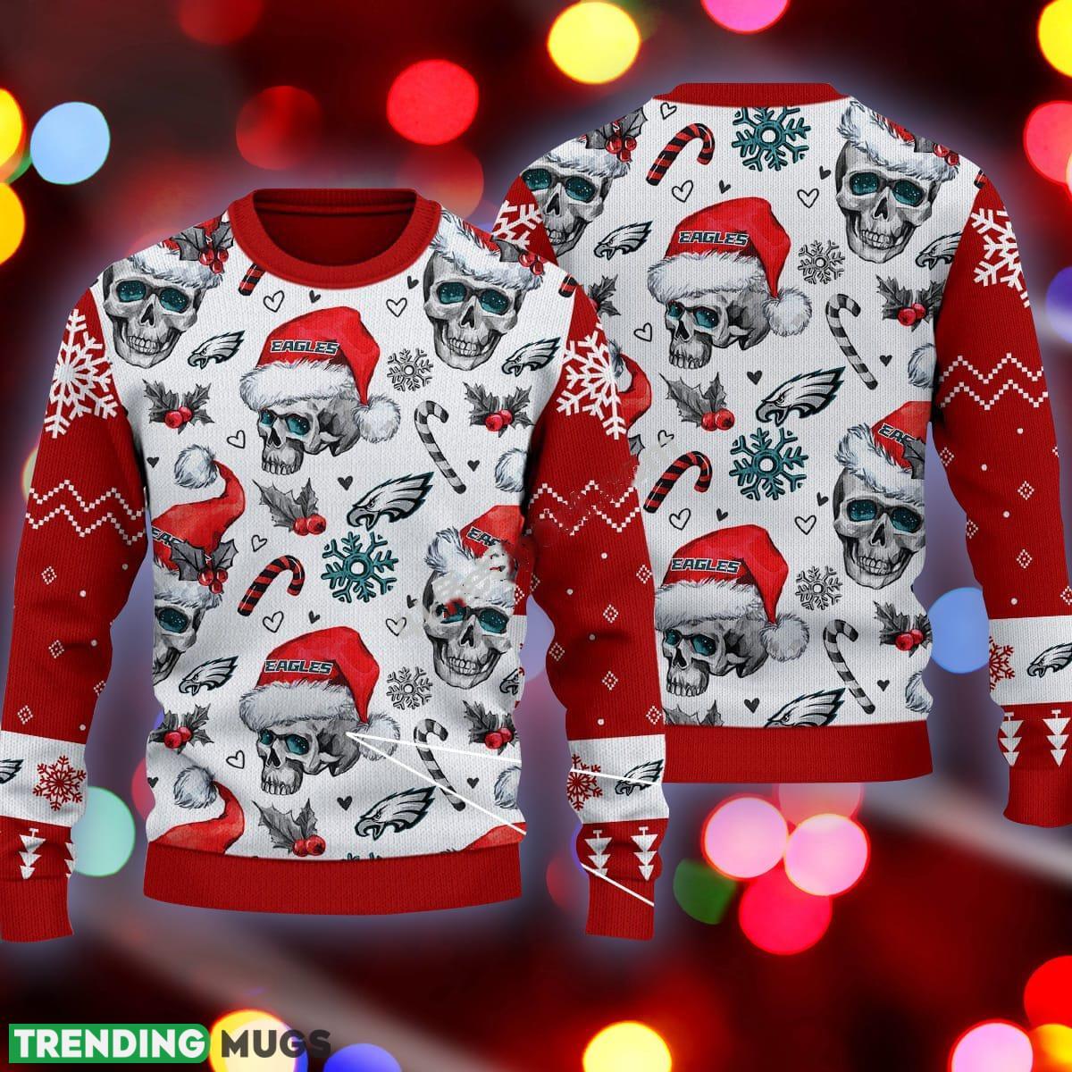 Xmas Philadelphia Eagles Skull Pattern Candy Cane Red Ugly Sweater AOP