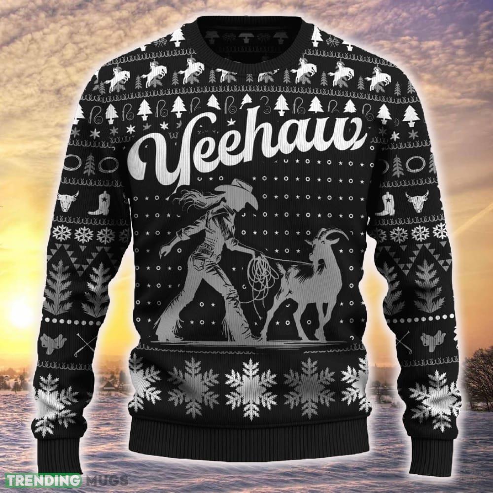 Yeehaw Goat Tying Cowgirl Christmas Tree 3D Sweater Ideas Gift For Men And Women Informations: