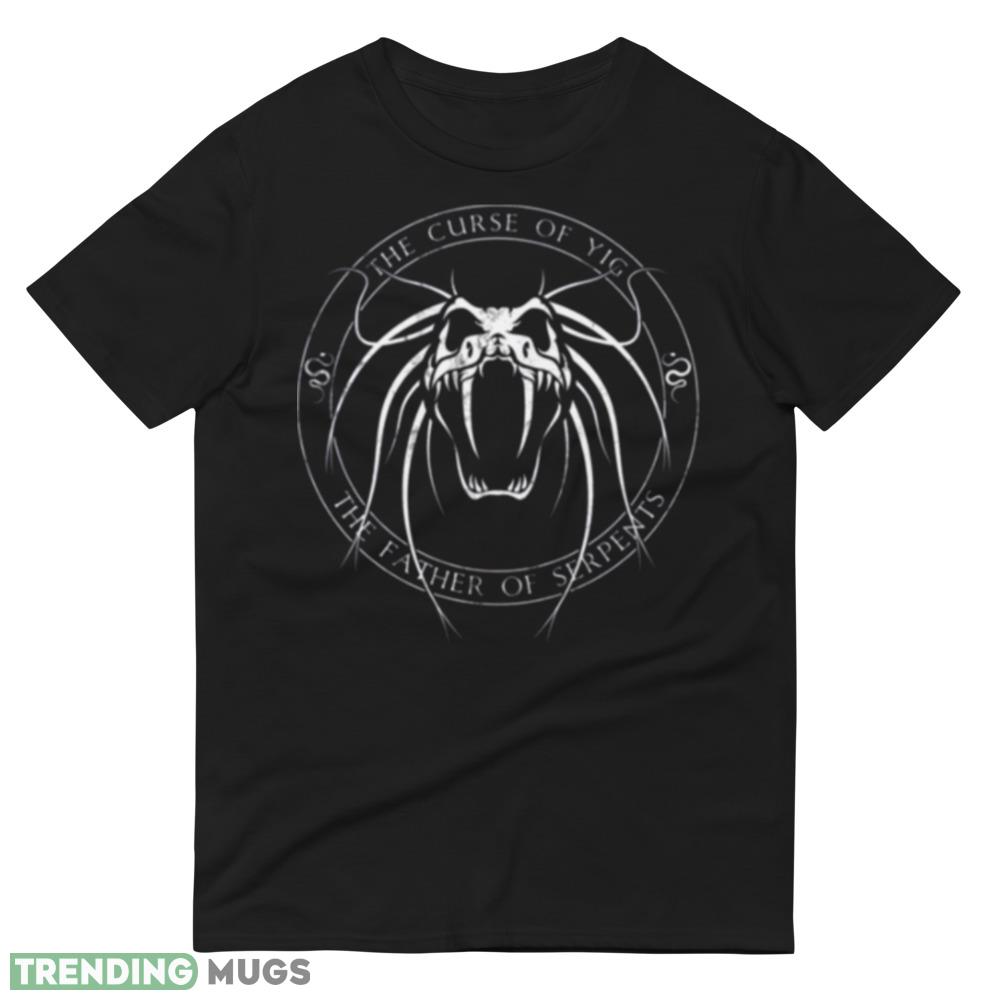 The design of the Yig Sigil Cthulhu Mythos Funny Black T Shirt is inspired by the Cthulhu Mythos, a popular horror fiction genre that has gained a cult following over the years. The Yig Sigil is a symbol that represents the deity Yig, a serpent god that is worshipped in the Cthulhu Mythos. The humorous twist on this design makes it a great conversation starter and a perfect gift for fans of the genre.