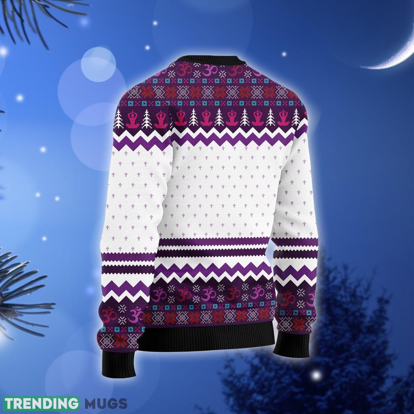 The design of our sweater is truly one-of-a-kind, combining the classic ugly Christmas sweater style with a twist of yoga-inspired elements. From downward dogs to tree poses, this sweater showcases various yoga poses in a fun and festive manner. The vibrant colors and intricate details make it a true conversation starter at any holiday gathering.